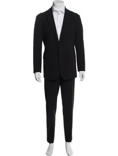 Men's solid black Theory two piece suit with deconstructed lining, notched lapels, single vent, and two button closure at front. | Theory Solid Wool Two Piece Suit in Black, Men's US 40 | L