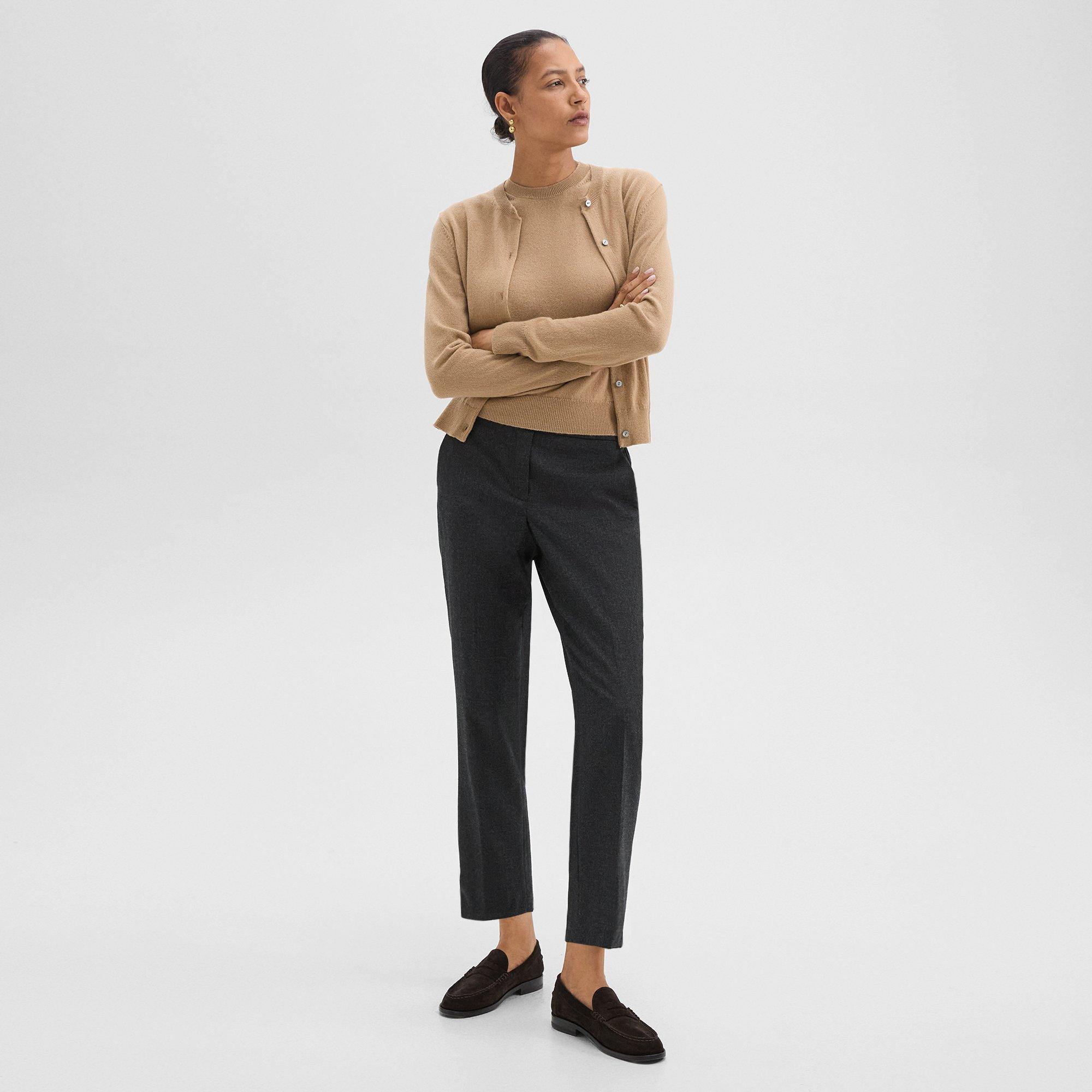 Theory's tailored expertise brought to life, the Treeca pants feature a slim, straight-leg silhouette crafted from stretch-infused wool. Pressed front pleats and back welt pockets give nod to menswear inspiration. Zip fly and hook bar closure Mid-rise waistline Pressed front pleats Side slip pockets Buttoned back welt pockets Slim, cropped legs 96% wool, 4% elastane Dry clean only Made in China Size & Fit Fits true to size Size US 0: 32in bust, 25.5in waist, 35.25in hips Size US 2: 33in bust, 26.5in waist, 36.25in hips Size US 4: 34in bust, 27.5in waist, 37.25in hips Size US 6: 35in bust, 28.5in waist, 38.25in hips Size US 8: 36in bust, 29.5in waist, 39.25in hips Size US 10: 37.5in bust, 31in waist, 40.75in hips Size US 12: 39in bust, 32.5in waist, 42.25in hips Please note, above measurements reflect Theory's size chart, not the actual garment. Sustainability Metrics: Natural Resources: at least 50% of materials used are produced with a reduced environmental impact Read more about Olivela's sustainability pillars here. Theory Women's Good Wool Treeca Pants in Mink Wool/Elastane