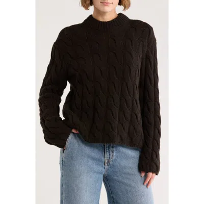 Wool Blend Cable Knit Pullover Sweater In Black