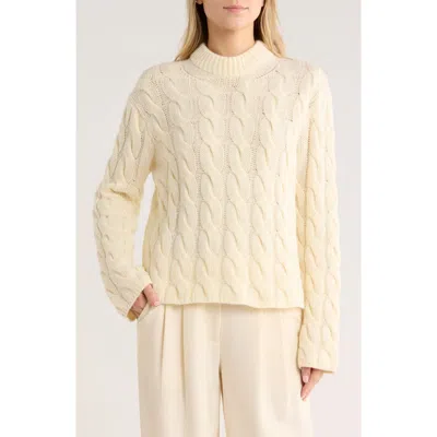 THEORY Wool Blend Cable Knit Pullover Sweater In Neutral