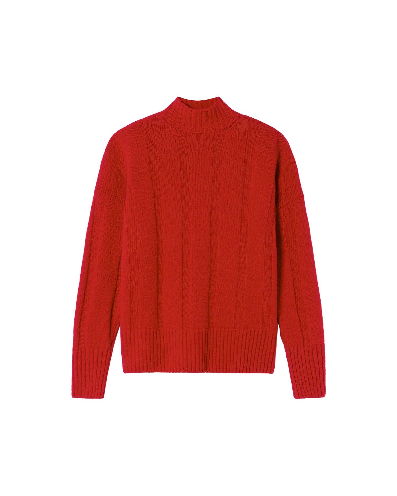 Red wool Carol sweater. High collar . Long sleeves. Fit Oversize. Garment length: long. Made In (knitting and dyeing): Italy, (manufacturing): Spain. Measurements in size S: 62 cm total length, 67 cm back width and 46 cm sleeve length. 100% Extra Fine Wool Cold Hand Wash Do Not Bleach Do Not Tumble Dry Iron Inside Out At Low Temperature Allow To Dry Clean Delicate