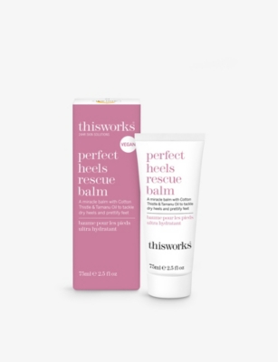 | This Works Perfect Heels Rescue BalmApplication: massage into heels and feet as often as required, exfoliating before use for the best resultsBenefits: perfect heels rescue balm with regenerating Cotton Thistle, refreshing Lemon and soothing Lavender will help hydrate and repair cracked heels and feet.Skin type: suitable for all skin typesRecycled and recyclable packagingVeganCruelty-free75mlMade in UKFor hygiene reasons, this product cannot be exchanged or refunded, unless faulty.