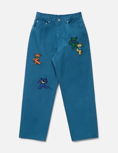 thisisneverthat® GD Dancing Bears Work Pants thisisneverthat® x Grateful Dead collaborative collection Stone-washed cotton oxford fabric Zip fly Embroidered artwork at front and rear 5-pocket style Straight leg Color: Blue