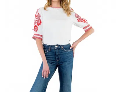 A versatile blouse that works from desk to dinner!The THML Embroidered Puff Sleeve Textured Top combines timeless charm with on-trend detailing, perfect for your spring wardrobe. This white blouse features playful red floral embroidery and short puff sleeves, offering a delightful textured design. Crafted from 98% Polyester and 2% Spandex, it boasts a body length of 23 3/4 inches and a bust width of 37 inches, with a convenient pull-on closure and a chic crew neckline. To maintain its elegant appearance, hand wash in cool water and lay flat to dry.