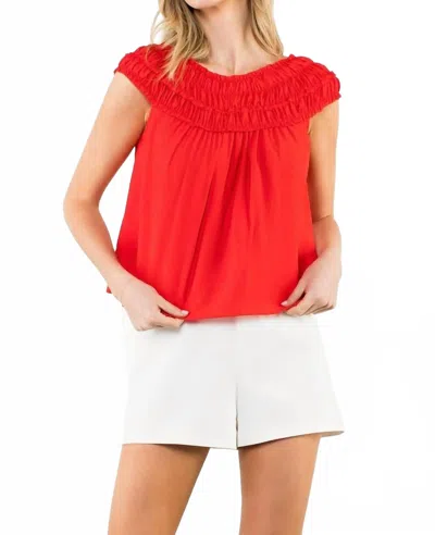 Love Shirred Round Neck Top In Red