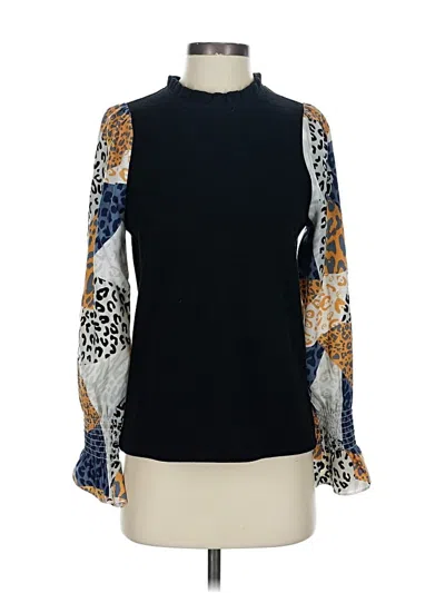 THML Pullover Sweater, Size: Small. Item Details: Blue, Animal Print Pattern, Mock Neckline, Long Sleeve, Women's Tops