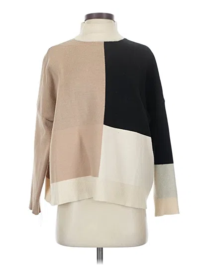 THML Pullover Sweater, Size: X-Small. Item Details: Tan, Color Block Pattern, Mock Neckline, Long Sleeve, Women's Tops, Viscose/Polyester/Nylon