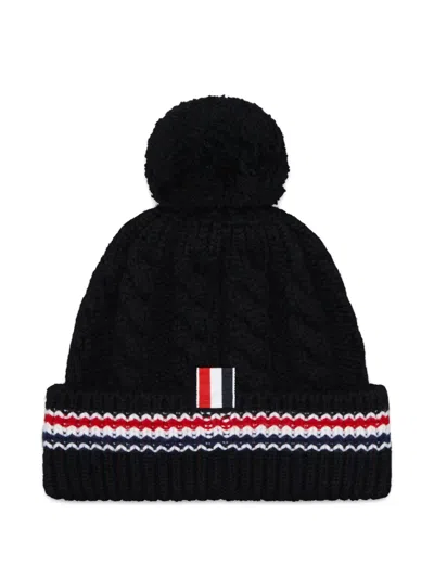 THOM BROWNE Cable-stitch Pompom Beanie In Black
