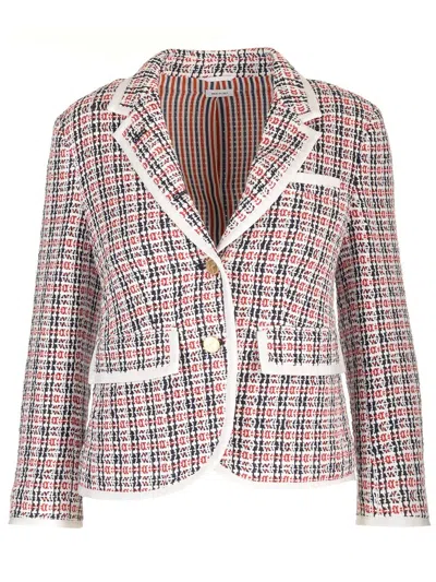 THOM BROWNE Check-pattern Buttoned Tweed Jacket In Red White Blue
