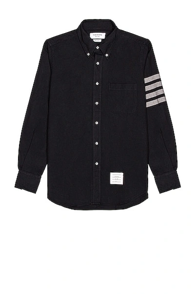 THOM BROWNE Flannel 4-bar Shirt In Blue