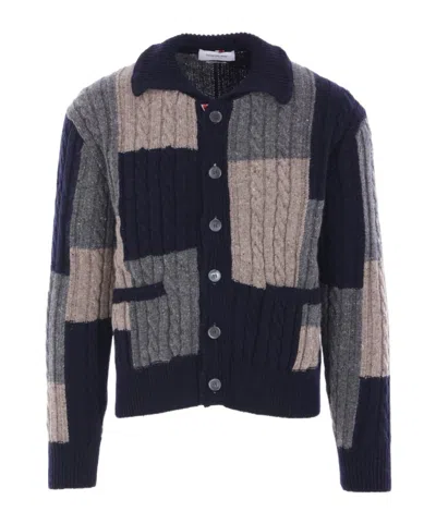 THOM BROWNE Patchwork Cable Knit Cardigan With Button-up Front In White