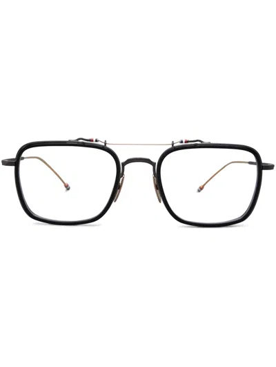 black acetate/titanium bronze-tone hardware rectangular face clear lenses nose pads straight arms stripe detailing All glasses from FARFETCH are sold as non-prescription frames. These glasses come with a protective case.
