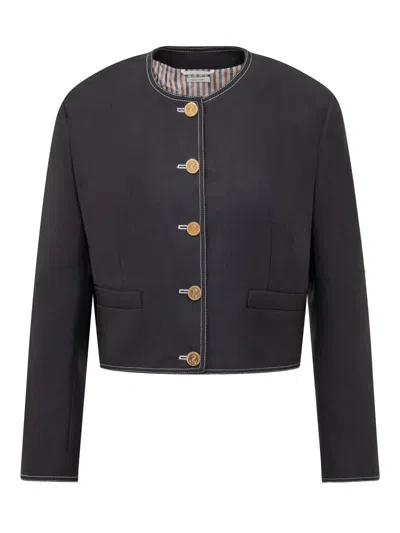 THOM BROWNE Rwb-detail Crewneck Cropped Jacket In Blue