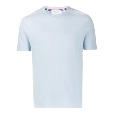 THOM BROWNE Short Sleeve Tee With Engineered In Blue