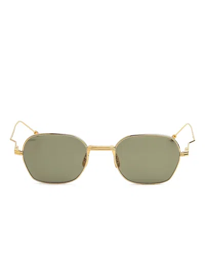 gold-tone UV-protective lenses nose pads curved arms These glasses come with a protective case.