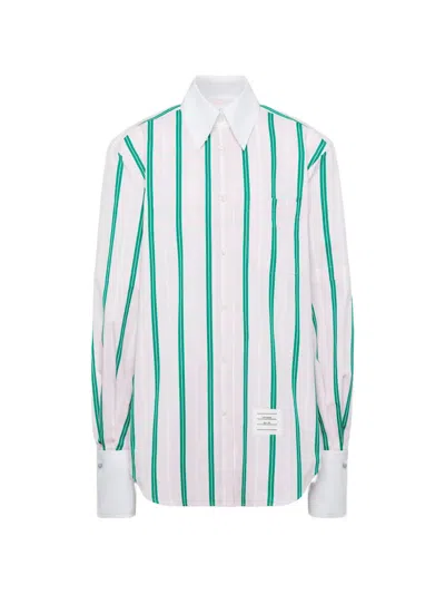 light pink stripe pattern front button fastening oversized fit contrast collar buttoned cuffs