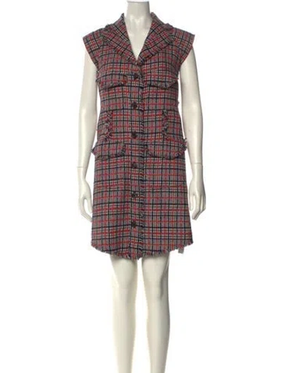 Thom Browne Wool A-Line Dress By Thom Browne Plaid Print Grosgrain Trim Short Sleeve with Collar Button Closure at Front Fit: Dresses by Thom Browne typically fit true to size. | Thom Browne Wool Mini Dress, Women's XS