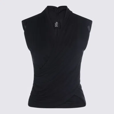 Black top from Thom Krom featuring sleeveless, back zip fastening, v neckline and elasticizated waist. Composition: _, 80% Modal, 12% Silk, 8% Elastane