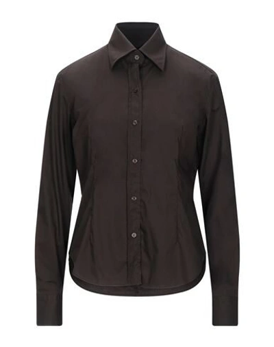 Solid color, Button closing, Classic Neckline, Long sleeves , Color: Dark brown , Size: 8