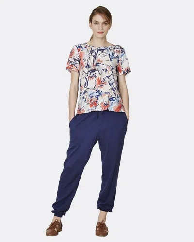 Opt for our striking new season painted floral in this simple tencel top. Featuring a contrasting navy back panel and zip detailing, pair this thoughtfully-designed floral top with your favourite trousers. 100% tencel. CODE: WST3049