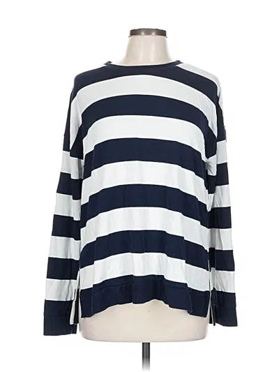 Thread & Supply Pullover Sweater, Size: Large. Item Details: Blue, Stripes Pattern, Crew Neck, Long Sleeve, Junior Tops