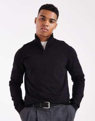 THREADBARE 1/4 Zip Knit Sweater In Black