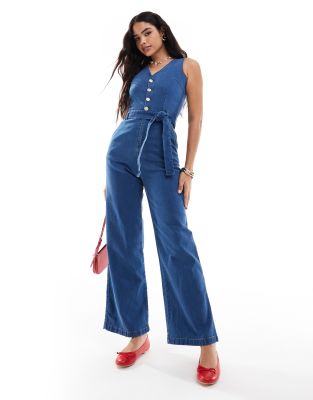THREADBARE Denim Jumpsuit In Blue