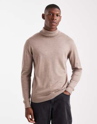 THREADBARE Roll Neck Sweater In Neutral