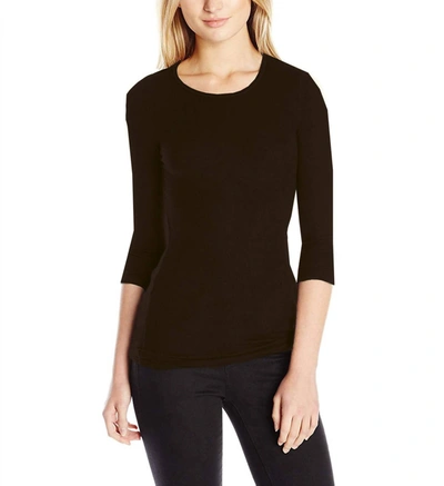 THREE DOTS Long Sleeve Crew Neck Tee In Espresso In Brown