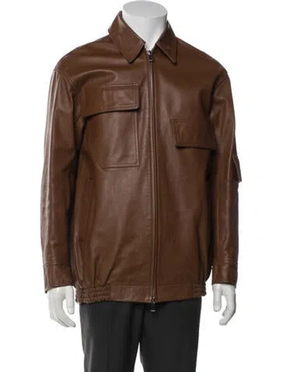 Pre-owned Leather Utility Jacket In Brown