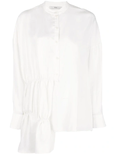 TIBI Patchwork Shirred Satin Tunic Top In White