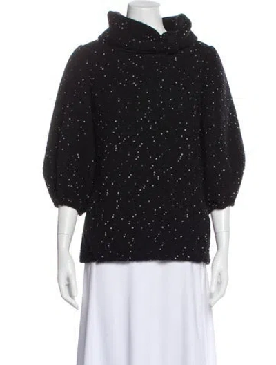 Tibi Virgin Wool Top Black Patterned Three-Quarter Sleeve with Turtleneck Fit: Tops by Tibi typically fit true to size. | Tibi Virgin Wool Patterned Top in Black, Women's S