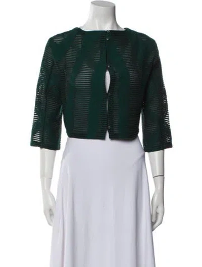 Tibi Wool Evening Jacket Blue Printed Collarless Fit: Jackets by Tibi typically fit true to size. | Tibi Wool Printed Evening Jacket in Blue, Women's US 4 | S