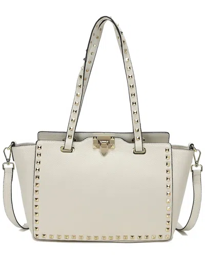 Color/Material: White Genuine Leather Design Details: Gold-Tone Hardware; Studded Trim Interior Design Details: One Zipper Pocket , One Open Pocket Measures 15In Wide X 9.5In High X 4.5In Deep Top Handles Drop 10In Shoulder Strap Drops 22In Zipper Closure Imported Please Note: All Measurements Were Taken By Hand And Are Approximate; Slight Variations May Occur.
