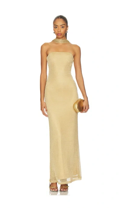 Tiger Mist Daniela Dress 2.0 in Metallic Gold. - size XS (also in L, M, S, XXS) Tiger Mist Daniela Dress 2.0 in Metallic Gold. - size XS (also in L, M, S, XXS) 100% polyester. Made in China. Dry clean. Fully lined. S-hook back closure. Metallic jersey fabric. Matching scarf included. Neckline to hem measures approx 52 in length. TMIS-WD57. TM18122. Melbourne sisters Stevie and Alana Pallister founded the Tiger Mist label in May 2013. Featuring fun, feminine styles that offer something for every wardrobe., Tiger Mist has a bold and sexy aesthetic that appeals to fashion-forward girls everywhere.