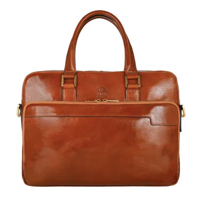 TIME RESISTANCE Men's Cognac Brown Leather Briefcase Laptop Bag - Orlando
