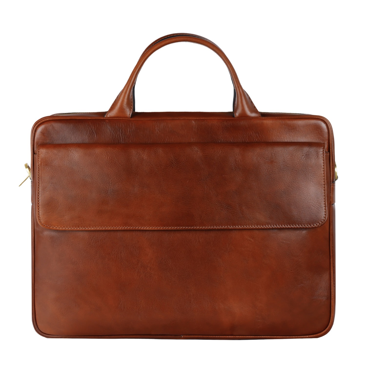 Men's Cognac Brown Leather Briefcase Laptop Bag - The Sheltering Sky