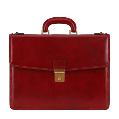 TIME RESISTANCE Men's Red Leather Briefcase - The Sound Of The Mountain