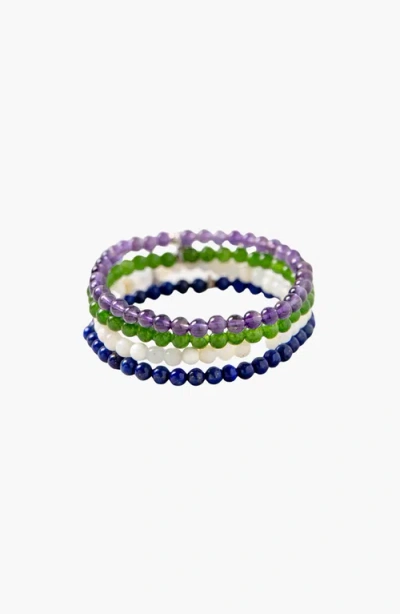 Light on their feet and lovers of harmony, the seventh ruling star sign of Libra is all about positive airy energy. The healing stones of Lapis, Amethyst, Green Jade and Opal come together in this Libra Zodiac Pack to ensure that Libras can learn to put themselves a little more first and follow through on all their wild and wonderful dreams. Lapis, Amethyst, Green Jade, Opalite 4mm genuine gemstone beads Strung on durable stretchy cord Size S fits wrists 5"-6" Size M fits wrists 6"-7" Size L fits wrists 7"-8" If you're in between sizes, size up Stone colors may vary Comes with a description card