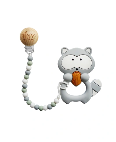 TINY TEETHERS DESIGNS 3 Stories Trading Tiny Teethers Infant Silicone Pacifier Clip With Large Removable Teether, Raccoon In Gray