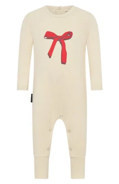 TINY TRIBE Babies' Bow Stretch Cotton Graphic Romper In White
