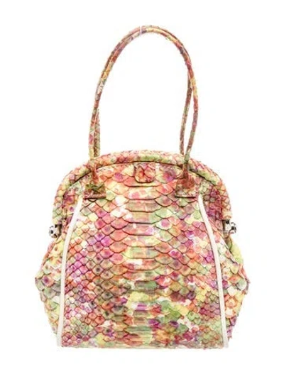 Titti Dell'Acqua Top Handle Bag Pink Python Floral Print Silver-Tone Hardware Flat Handles Leather Lining Clasp Closure at Top Unfortunately, due to restrictions, this item may not be eligible for shipping in all areas. | Titti Dell'Acqua Python Top Handle Bag in Pink