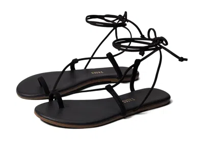 TKEES Jo - Women's Sandals : Black : Dress up wearing the TKEES Jo sandals that look chic and feel comfortable. ; Leather upper, lining, and insole. ; Wrap around ankle tie closure. ; Open round toe. ; Flat silhouette. ; Rubber sole. ; Made in Brazil. Measurements: ; Weight: 4 oz ; Product measurements were taken using size 9, width B - Medium. Please note that measurements may vary by size. | TKEES Jo Women's Sandals Black : 11 B - Medium, Leather