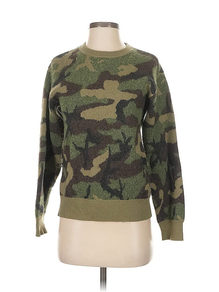 TNA Pullover Sweater, Size: 2X-Small. Item Details: Green, Camo Pattern, Crew Neck, Long Sleeves, Women's Tops, Viscose/Merino Wool/Nylon, True To Size