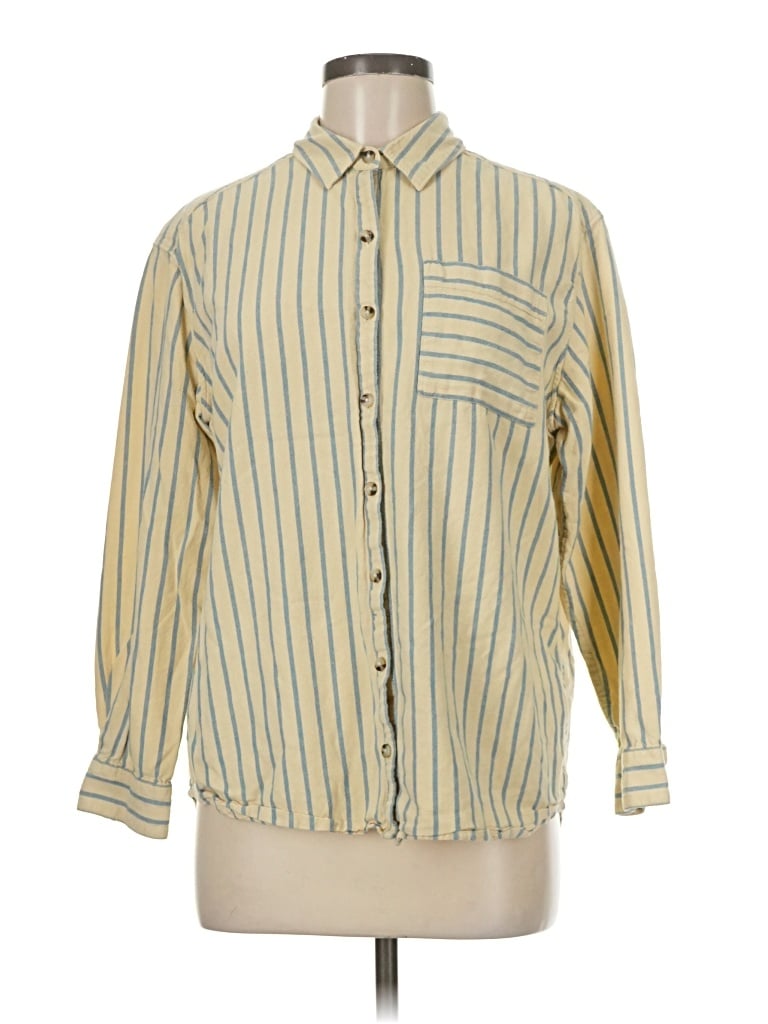 Toad & Co Long Sleeve Button Down Shirt, Size: Medium. Item Details: Yellow, Stripes Pattern, Collared Neckline, Long Sleeves, Women's Tops