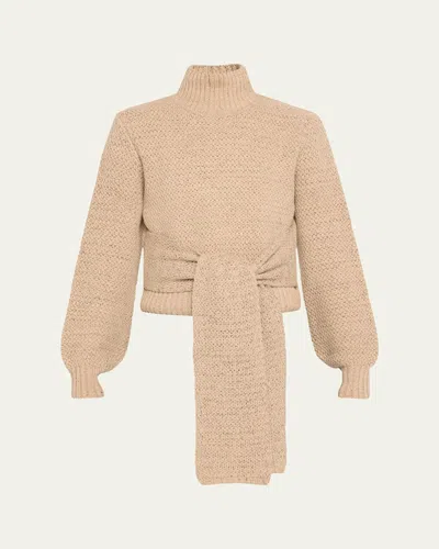 TOCCIN Aspen Wool And Cashmere Tie-front Turtleneck Sweater In Camel