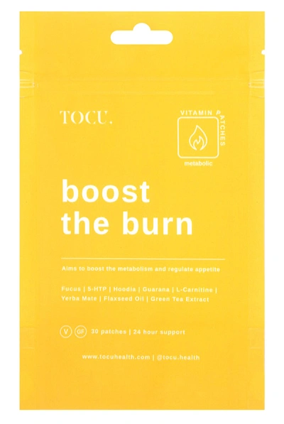 TOCU Boost The Burn Vitamin Patches Amp it up with our Boost The Burn patches. This patch aims to boost the metabolism and regulate appetite, helping you to reach your goals sooner. The best part? The only thing you have to do is peel, stick, and go. Green Tea Extract Full of antioxidants which can help with weight management. Fucus Packed with nutrients that help you get the vitamins and minerals your body needs. Guarana A natural source of caffeine supporting physical and mental vitality. Hoodia Effective appetite suppressant. L-Carnitine Plays a crucial role in burning fats to create usable energy. 5-HTP Can aid weight loss by increasing the feeling of fullness. Yerba Mate Helps boost energy and may help towards weight loss. Flaxeed Oil Provides protein and fibre and may reduce appetite and aid weight loss YOU MAY ALSO LIKE TO KNOW: Pack contains 30 patches. Apply one patch to a relatively hair-free area and replace at the same time every day. Do not exceed one patch per day. This patch is not a medicine, rather a carefully formulated natural blend. If side effects occur, stop using immediately. If you are pregnant, lactating or taking other medication, consult a medical professional before use.