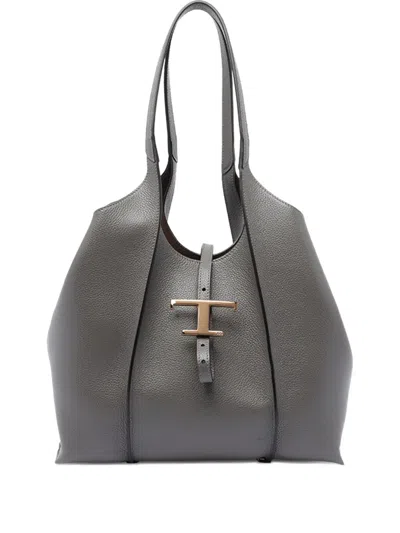 TOD'S Structured Double Handle Shopping Bag In Gray