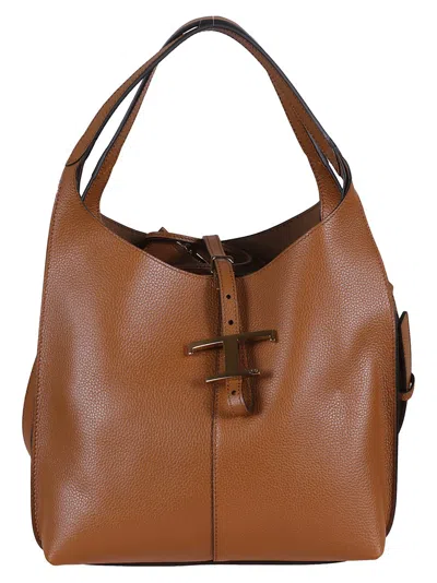TOD'S Timeless Grained Leather Tote Bag In Brown