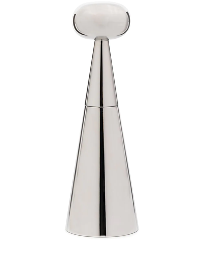 Silver-tone stainless steel Mill small grinder from TOM DIXON featuring metallic finish and twist detailing.